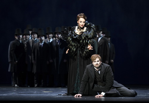 Das gilt nun aller­dings ganz und gar nicht für die Sänger. Mit Cristina Pasaroiu steht eine glanz­volle Verkör­perung aller Angebe­teten des Dichters auf der Bühne. Die Frauen­rollen sind nicht auf vier verschiedene Sänge­rinnen aufge­teilt, sondern werden von einer Darstel­lerin vertreten. Die große Kunst der Pasaroiu besteht darin, mit außer­or­dent­licher Wandel­barkeit die unter­schied­lichen Rollen zu zeigen. Nicht nur vermag sie die jeweils hohen und höchsten gesang­lichen Anfor­de­rungen blendend zu meistern, zusätzlich spielt sie auch die so ganz unter­schied­lichen Charaktere darstel­le­risch überlegen und überzeugend. Daniel Johansson spielt einen in Erscheinung groß aufge­wach­senen, stimmlich im Ausdruck schönen, aber in seiner Gefühlswelt zugleich zunehmend zerbrech­lichen Hoffmann. Die Entwicklung des Charakters gelingt dem Sänger über die Handlungs­ele­mente der Erzäh­lungen und Akte hervorragend.