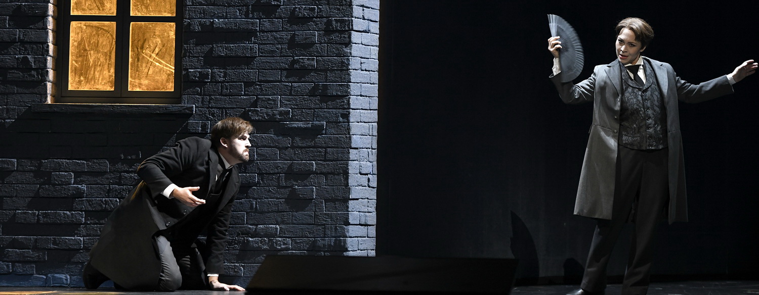 Das gilt nun aller­dings ganz und gar nicht für die Sänger. Mit Cristina Pasaroiu steht eine glanz­volle Verkör­perung aller Angebe­teten des Dichters auf der Bühne. Die Frauen­rollen sind nicht auf vier verschiedene Sänge­rinnen aufge­teilt, sondern werden von einer Darstel­lerin vertreten. Die große Kunst der Pasaroiu besteht darin, mit außer­or­dent­licher Wandel­barkeit die unter­schied­lichen Rollen zu zeigen. Nicht nur vermag sie die jeweils hohen und höchsten gesang­lichen Anfor­de­rungen blendend zu meistern, zusätzlich spielt sie auch die so ganz unter­schied­lichen Charaktere darstel­le­risch überlegen und überzeugend. Daniel Johansson spielt einen in Erscheinung groß aufge­wach­senen, stimmlich im Ausdruck schönen, aber in seiner Gefühlswelt zugleich zunehmend zerbrech­lichen Hoffmann. Die Entwicklung des Charakters gelingt dem Sänger über die Handlungs­ele­mente der Erzäh­lungen und Akte hervorragend.