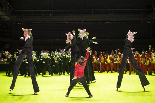 Koskys Inszenierung beginnt im Dunkeln. Man hört einen berückenden, melancholischen Gesang. Es ist jenes Hebräische Lied, das auch am Ende erklingt. Ganz allmählich schreitet der Chor dabei nach vorne, in den Händen Kerzen, die nach und nach aufglimmen. Er trägt üppige, von Katrin Lea Tag entworfene, folkloristische Kostüme. So stellt sich eine Schtetl-Atmosphäre ein, die durch die jüdische Weise musikalisch untermauert wird. Was folgt, ist ein kontrastreicher Wechsel von statischen Chortableaus, deftig ausgespielten Genreszenen und Momenten des Innehaltens.