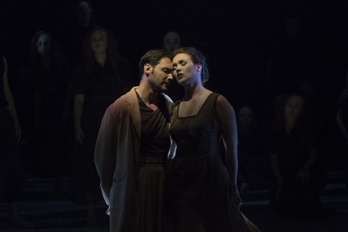 Dem 86 Mitglieder starken Chor – Einstudierung Martin Wright – ist auch eine solistische Rolle in der Inszenierung zugeteilt. Blitzschnell verwandelt sich Hoffnung und Bewunderung in Empörung und Zorn, ganz wie in der heutigen populistisch-politischen Landschaft, mit dem Unterschied, dass es hier musikalisch bestens gemeistert wird.