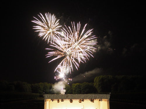 Und als sei es des einen Feuerwerks barocker Musik nicht genug, eilen die Gäste anschließend ins Freie, um das mittlerweile schon legendäre, tatsächliche Abschlussfeuerwerk des Haydn-Festivals nicht zu verpassen. Im Park hat das Neue Rheinische Kammerorchester unter der Leitung von Gerhard Peters Platz genommen. Mit technischer Hilfe präsentieren die Musiker die Music for the Royal Fireworks von Georg Friedrich Händel, während Feuerwerker Helmut Reuter mit seinem Team das Publikum mit Kaskaden, Girlanden und Eruptionen bunten Lichts über den Baumwipfeln des englischen Landschaftsgartens ein letztes Mal verzaubert.