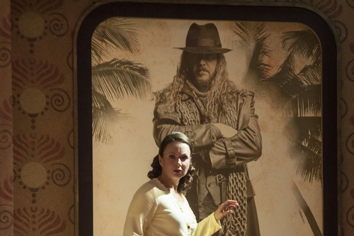 Metzgers Regiekonzept bedient sich des aus Woody Allens cineastischem Meisterwerk The Purple Rose of Cairo bekannten Kunstgriffs. Die Titelfigur scheint geradewegs von der Leinwand zu einer fantasiebegabten, doch äußerlich grauen Maus namens Senta herabgestiegen, deren Lebensersatz das Kino ist. Nicht anders schwingt sich Daland, der zunächst wie ein braver Binnenschiffer daherkommt, in seiner Einbildung zum Hochseekapitän auf. So weit, so gut und nachvollziehbar. Vielleicht auch noch, dass sich der Barkeeper der zum Kino gehörigen Gastronomie in den Steuermann hinein fantasiert. Erik aber führt im cineastisch angehauchten Zwischenreich von Imagination und Realität kein glaubhaftes Leben.