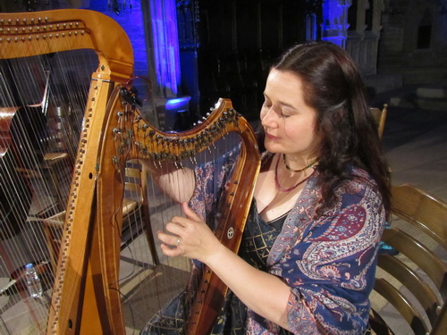 Ob die rauen Nordmeer-gewohnten Wikinger sich tatsächlich mit den Capri-Fischern durch das Element Wasser verbunden fühlen, müsste man beide einmal fragen. Überrascht sind viele Zuhörer in der voll besetzten Marienkirche von der Nähe und Ähnlichkeit der aufgeführten Musik. Die Harfenistin Arianna Savall beginnt den Abend mit einer Eigenkomposition zu einem gregorianischen Text und überrascht die Besucher mit ihrem hellen, weit tragenden Sopran, der sich vielfach in den Deckengewölben des Kirchenschiffes bricht. Sie begleitet sich dabei selbst auf der Tripelharfe, einem Instrument aus der walisischen Musiktradition. Kontrabass, eine Fiedel und eine äußerst zurück genommene Perkussion treten hinzu. Mit dem norwegischen Lied Benedikt und Arolilja setzt Petter Udland Johsanson das Programm fort. Sein etwas dunkler gefärbter Tenor und die norwegische Sprache verstärken bei seiner schwebenden, kaum akzentuierten Intonation den fremdartigen Klang dieses Liedes einer Königsgeschichte, die zum Schluss alle Instrumente begleiten. Mit dem katalanischen Lied El Mestre wechselt Savall den Ort und nimmt die Zuhörer in einer lebhaften Liederzählung mit nach Spanien. In leichtfüßiger Begleitung setzen Gitarre und Bass vorsichtige Akzente, bis Tenor, Gitarre und Mandoline hinzutreten und schließlich auch der Perkussion ein kleines Solo gönnen.