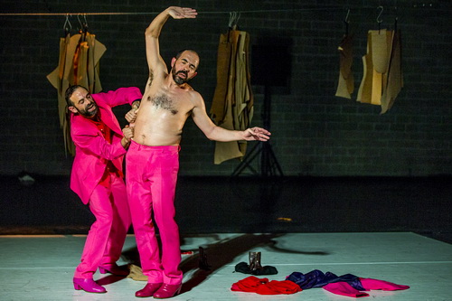 Drei Körper in rosafarbenen Anzügen sind hinten links in der Ecke der von allen Vorhängen befreiten Bühne ineinander verknäuelt. Lérida selbst hat sich um Bühne und Kostüme gekümmert. Da liegt er also nun am Boden, der Tanz, in seiner eigenen Kunstfertigkeit gefangen, unfähig, sich weiter zu entwickeln. Zaghafte Bemühungen der Körper, sich voneinander zu lösen, gelingen nur schwerfällig, halbherzig. Das ist die Ausgangssituation für einen einstündigen Tanz, der bekannte Figuren und Schrittfolgen andeutet, um sie anschließend nachhaltig aufzulösen. Das geschieht lustvoll und mit Spaß, ohne je wirklich komisch zu werden. So ist das gewollt. Selbst die klassische Flamenco-Musik ist verpönt. Und auch das Stayin‘ alive, das Jordi Collet „vom Band“ spielt, findet nur zögerlich Eingang. Am Leben bleiben? So einfach ist es wohl nicht. Dazu ist die Sache zu ernst.