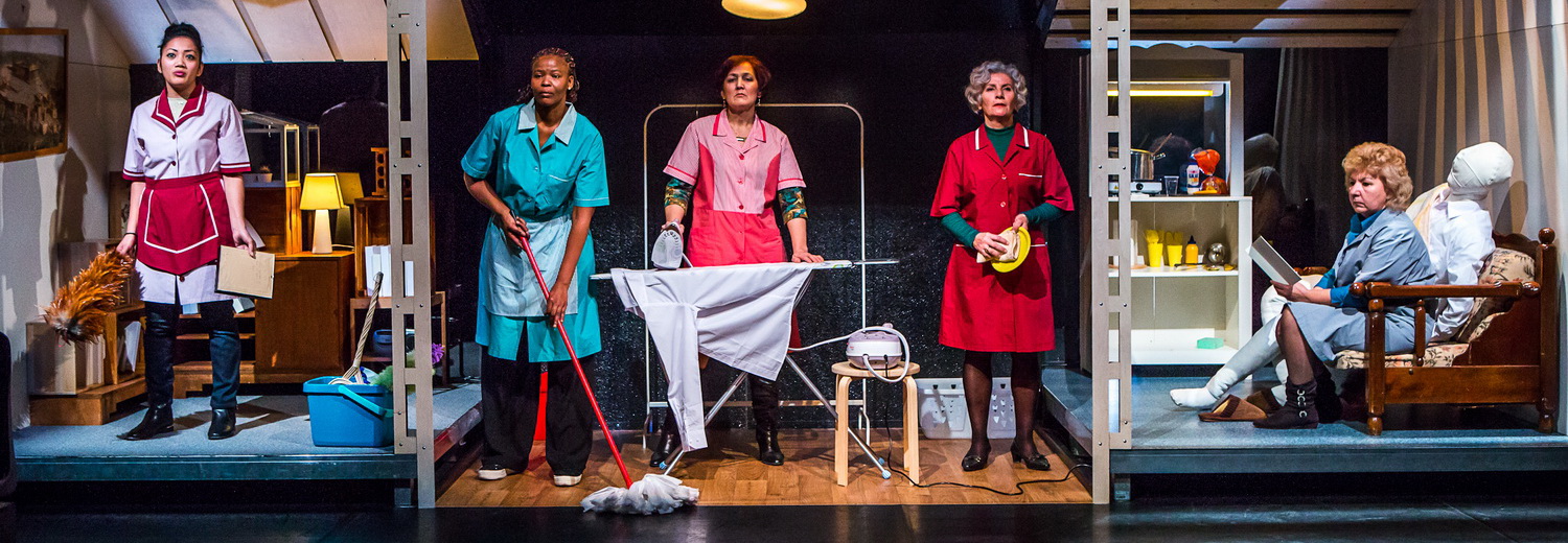 Lauretta Macauley, Rositsa Pandalieva, Fredalyn Resurrecion, Drita Shehi und Valentina Ursache sprechen nur selten mit Bitterkeit; es reicht, was sie berichten, um zwei Dinge zu erkennen: Dieses Leben findet nicht in Griechenland statt, sondern in irgendeinem Land dieser Welt. Und Aufgeben gilt nicht. Trotzig und mit Freude im Herzen wird weiter zur Musik von Panagiotis Manoulidis gesungen und getanzt, die Putzrequisiten immer an der Frau. Wo immer sie auftreten, geben sie ihre Geschichten in einem griechisch-englischen Gemisch zum Besten, die Übertitel in der jeweiligen Landessprache müssen es richten. Nikos Pastras hat die Projektionen eingerichtet, die Jugendbilder, Bilder der Kinder, aber auch ergänzende Texte zeigen. Stroulia hat gleichsam für die Kostüme gesorgt. So beginnen die Damen in Putzkitteln, aus denen sie sich im Lauf der Handlung befreien. Ihr Selbstbewusstsein ist trotz aller Ungerechtigkeiten gewachsen. Schließlich haben sie nicht nur ihr Leben gemeistert und ihre Kinder bei allen Widrigkeiten großgezogen, sondern auch dafür gesorgt, dass Griechenland sauber bleibt. Und sie haben es letztlich sogar bis auf die Theaterbühne geschafft, wie sie ihren Kindern stolz via Skype berichten können.