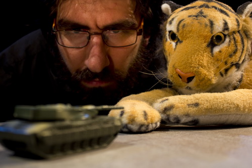 Doron ruft die Erinnerungen wach. Aber er verzaubert das Publikum mit Geschichten, die sie als Erwachsene verstehen. Da gibt es den Plüschtiger, dem er mit geübten Fingern zu einem wunderbaren Leben verhilft. Der Tiger gerät in ein Kriegsgebiet, nein, heute sprechen wir von Krisengebieten, in denen Miniaturobjekte wie Hubschrauber, Panzer und Soldaten auftauchen. Und wenn ein solcher Soldat zu träumen beginnt, ist auch Platz für eine Barbie-Puppe. Mit der kann man sogar skypen. Doron kann mit solchen Objekten zaubern. Wirklich. Das Publikum ist hin und weg. Glücklicherweise gibt es eine Wiederholung der Aufführung. Damit noch mehr Erwachsene wieder zu Kindern werden, die in Dorons Wunderland eintauchen können. In 40 Minuten, die sie in ihrem Leben nicht mehr vergessen werden.