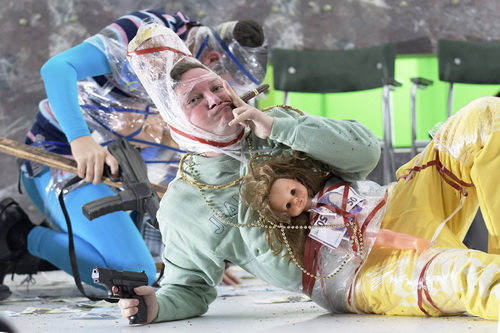 Jim Mahoney, von Ralf Ertel gekonnt flippig gespielt, singt und folgt diesem Gesetz bis zum Exzess, was genauer heißt: Bis zur Pleite. Neben Ertel bringen mit viel Spiellust Ines Lex die Jenny, Svitlana Slyvia die Begbich, Philipp Werner Fatty, den Proku­risten, und Ki-Hyun Park den Dreiei­nig­keits­moses als schräge Typen auf die Bühne.