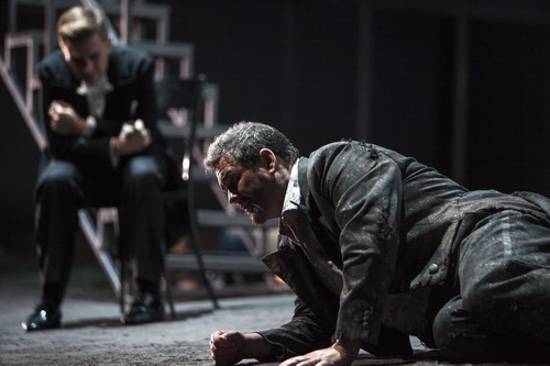 Damit setzt Kinmonth allerdings einen Kontrapunkt zum Bühnenbild von Darko Petrovic und den Kostümen von Annina von Pfuel, die beide auf scharfe Schwarz-Weiß-Kontraste setzen. Religiöser Zierrat ist ausgemerzt. Die breite Bühne des Staatenhauses ist nach hinten dreifach gestaffelt, wobei das Orchester in einem Graben zwischen zwei Spielebenen postiert ist. Ebenen, die die beiden Welten trennen, aber durch eine Brücke und etliche Zugänge durchlässig bleiben. Es zeigt sich eine kühle Welt wie in einem modernen Großraumbüro, und so kühl ist auch die Personenregie geprägt. Die Figuren bewegen sich oft in prozessionshafter Statik, gipfelnd in einem Trauerzug mit der entseelten Elisabeth, bei dem sich Assoziationen an eine roboterhafte Geisterwelt einschleichen, die Kinmonth eigentlich vermeiden wollte. Dass sich mechanische Gesten wiederholen, die an Robert Wilsons mittlerweile abgespulte Erfolgs-Masche erinnern, wirkt ebenfalls eher hilflos und letztlich antiquiert. Man merkt der Produktion an, dass Kinmonth von Hause aus Bühnenbildner ist. Da liegen ihm bildhafte Tableaus‘ näher als eine organische Personenführung. Eine runde Tannhäuser-Inszenierung ist das nicht.