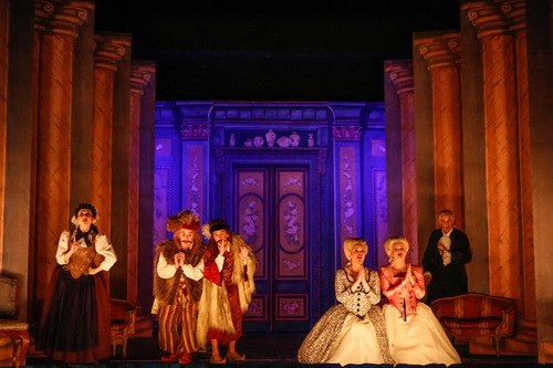 Es hat auch noch einen weiteren besonderen Reiz, dass nun das Teatro Barocco hier ansetzt und im zweiten Jahr seines Festivals in Laxenburg konsequent sein Credo, nämlich eine historische, absolut werkgetreue Aufführungspraxis zu zeigen, fortführt. Spiritus rector des gesamten Unternehmens und Intendant ist seit fünf Jahren Bernd Roger Bienert, Wissenschaftler, Regisseur und ehemaliger Tänzer an der Wiener Staatsoper. Im Gegensatz zur Originalklangbewegung, wo die authentische Wiedergabe und Beweislage immer wieder umstritten ist, passt Bienert die Bewegungsregie den vielen erhaltenen Bildquellen von Opernaufführungen der Entstehungszeit an. So kommt die Bühnenbeleuchtung teils nur von der Seite und überwiegend nur von unten, um die damals übliche Beleuchtung durch Kerzen nachzustellen. Dadurch wirken die stark geschminkten Gesichter, wie es seinerzeit üblich war, noch maskenhafter und fast unheimlich. Selbstverständlich wird auch auf modernes Theaterequipment wie etwa auf Übertitel völlig verzichtet. Durch die nachgestellte, ausladende und stark symbolische Gestik wird aber der Text bei den Protagonisten, die selbstverständlich in historischen Kostümen auftreten, die ebenso wie die Kulissen vom rührigen Intendanten erdacht wurden, verständlich nachgestellt. Die nach der Seite beweglichen Bühnenelemente sind nur zweidimensional. Selbstverständlich bedarf es, um eine historische Aufführungspraxis glaubhaft zu realisieren, einer akribisch genauen Arbeit mit den Originalpartituren: Jede Anmerkung des Komponisten wird hier wörtlich genommen. Mozart hat auch in seiner Partitur genau bezeichnet, wann ein Sänger die Bühne zu betreten und wann er sie zu verlassen hat. Bienert inszeniert ein „komisches Singspiel“, das die Weisheiten, Bosheiten und erotische Anspielungen Da Pontes und Mozarts perfekt bedient. Es ist ihm ein ungemein vitales, ja turbulentes Verwechslungs- und Verkleidungsspiel mit einfachen, sparsamen Mitteln gelungen, für das er ein spielfreudiges Ensemble zusammengestellt hat.