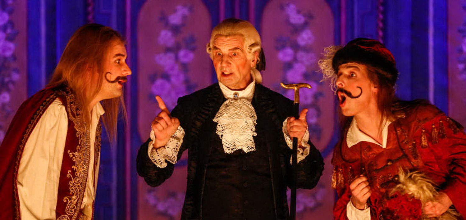 Es hat auch noch einen weiteren besonderen Reiz, dass nun das Teatro Barocco hier ansetzt und im zweiten Jahr seines Festivals in Laxenburg konsequent sein Credo, nämlich eine historische, absolut werkgetreue Aufführungspraxis zu zeigen, fortführt. Spiritus rector des gesamten Unternehmens und Intendant ist seit fünf Jahren Bernd Roger Bienert, Wissenschaftler, Regisseur und ehemaliger Tänzer an der Wiener Staatsoper. Im Gegensatz zur Originalklangbewegung, wo die authentische Wiedergabe und Beweislage immer wieder umstritten ist, passt Bienert die Bewegungsregie den vielen erhaltenen Bildquellen von Opernaufführungen der Entstehungszeit an. So kommt die Bühnenbeleuchtung teils nur von der Seite und überwiegend nur von unten, um die damals übliche Beleuchtung durch Kerzen nachzustellen. Dadurch wirken die stark geschminkten Gesichter, wie es seinerzeit üblich war, noch maskenhafter und fast unheimlich. Selbstverständlich wird auch auf modernes Theaterequipment wie etwa auf Übertitel völlig verzichtet. Durch die nachgestellte, ausladende und stark symbolische Gestik wird aber der Text bei den Protagonisten, die selbstverständlich in historischen Kostümen auftreten, die ebenso wie die Kulissen vom rührigen Intendanten erdacht wurden, verständlich nachgestellt. Die nach der Seite beweglichen Bühnenelemente sind nur zweidimensional. Selbstverständlich bedarf es, um eine historische Aufführungspraxis glaubhaft zu realisieren, einer akribisch genauen Arbeit mit den Originalpartituren: Jede Anmerkung des Komponisten wird hier wörtlich genommen. Mozart hat auch in seiner Partitur genau bezeichnet, wann ein Sänger die Bühne zu betreten und wann er sie zu verlassen hat. Bienert inszeniert ein „komisches Singspiel“, das die Weisheiten, Bosheiten und erotische Anspielungen Da Pontes und Mozarts perfekt bedient. Es ist ihm ein ungemein vitales, ja turbulentes Verwechslungs- und Verkleidungsspiel mit einfachen, sparsamen Mitteln gelungen, für das er ein spielfreudiges Ensemble zusammengestellt hat.