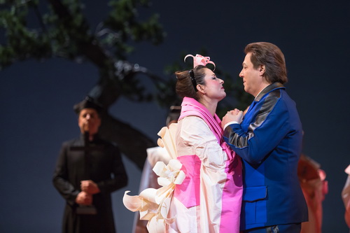 „Addio, addio“: Schluchzend und mit Tränen erstickter Stimme nimmt die unglück­liche Cio-Cio-San Abschied von ihrem Kind. Gleich darauf wählt sie den Freitod und stran­gu­liert sich an einem Baum: Das Publikum tief zu berühren weiß Lucia Premerl aber nicht nur in dieser Schluss­szene. Sie vermag in Giacomo Puccinis Madama Butterfly mit großer Bühnen­präsenz und einer weiten Gefühls­pa­lette Innigkeit, Naivität, Freude wie auch Verzweiflung hinreißend auszu­drücken und damit intensive Emotionen hervor­zu­rufen. Auch ihre große Arie Un bel di vedremo – „Eines Tages sehen wir …“ – im zweiten Akt wird zum Ereignis. Schau­spie­le­risch kann da Renzo Zulian als mit den Gefühlen leicht­fertig spielender US-Marine-Offizier F. B. Pinkerton nicht mithalten, wiewohl er ihn mit strah­lendem, durch­set­zungs­kräf­tigem Tenor zu singen vermag. Marko Kobal ist ein wohlklin­gender, etwas blass spielender Konsul Sharpless. Irene Parlov überzeichnet darstel­le­risch die Suzuki ziemlich, singt sie aber mit einnehmend schönem Timbre. Gut erlebt man auch die vielen kleineren Partien, bei denen besonders Matej Vovk als schmie­riger und geris­sener Goro wie auch Darko Vidic als schön timbrierter Prinz Yamadori und Ana Dezman als Kate Pinkerton hervor­stechen. Weniger gut erlebt man diesmal den Chor des Hauses, der von Zeljka Ulcnik Remic einstu­diert wurde. Insbe­sondere der berühmte „Summchor“ wurde intona­ti­ons­mäßig unsauber gesungen.