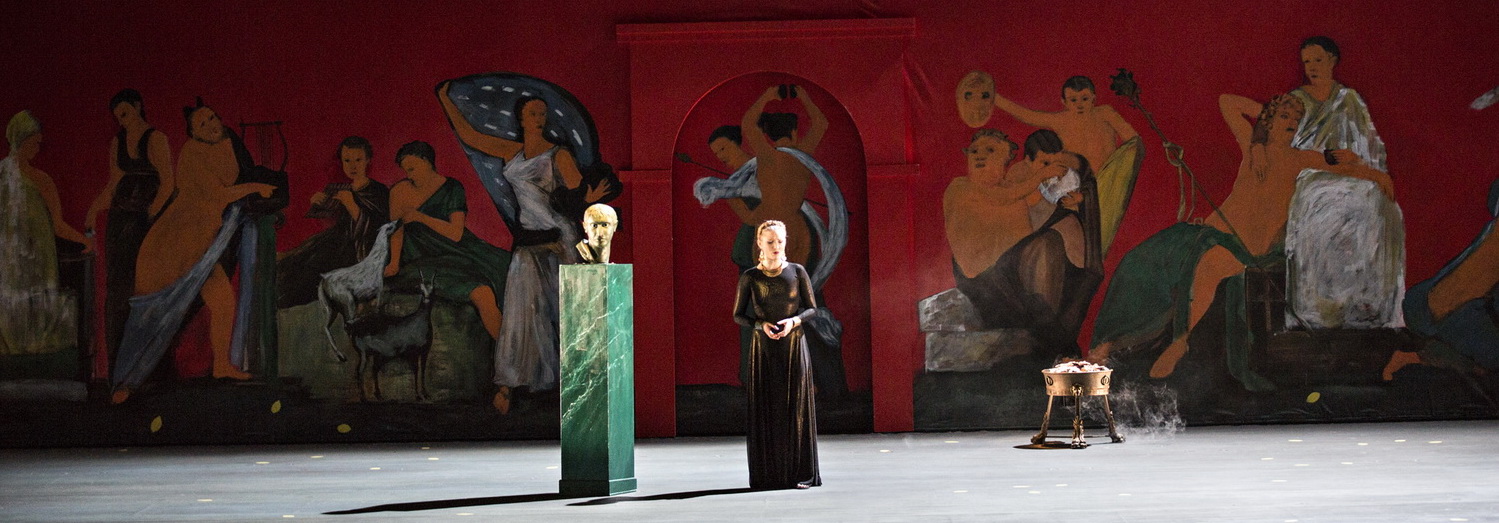 An diesem Ort also findet die Reinkarnation von L’Incoronazione di Poppea statt und eröffnet das diesjährige Festival. Ellen Hammer und Bernard Michel haben versucht, die Inszenierung von Grüber erneut zu verwirklichen. Die Idee: Grübers Regie so originalgetreu wie möglich nachzuvollziehen und sie gleichzeitig dem Vergleich zu entziehen. Also verweigert Dorny die große sängerische Besetzung und setzt auf sein Opernstudio. Es wird ein Fest der kleinen, schönen Stimmen und der Alten Musik. Aber das ist vorerst zweitrangig. Die Poppea steht am Anfang der Beispiele, die Dorny von einst führenden Vertretern des Regie-Theaters, wenn man nicht sogar von Pionieren sprechen will, herausgesucht hat, weil sie ihm unvergessen ist. Eines ist sie aber gewiss nicht: zeitlos. Intelligent gemacht, aber die naturalistische Bühne hat sich längst überlebt. Und wer heute die Pappmaché-Zedern sieht, die geschickt die Häuserfassade verdecken, die in anderen Bildern wichtig wird, weiß, dass das vor allem für die Bühnenarbeiter eine Herkules-Aufgabe ist, in den vergleichsweise kurzen Zwischenspielen die Umbauten geräuschlos vorzunehmen. Aber altbacken bleibt altbacken und betulich bleibt betulich. Daran ändern auch die Kostüme nichts, die eher viktorianisch-bieder wirken. Da stehen junge, attraktive Sängerinnen auf der Bühne und sehen aus, als sollten sie in Sack und Asche gehen. Der Hofdichter wird gar in der Toga vor die Nerone-Büste gestellt, was dann am ehesten noch als Spaß durchgehen mag.