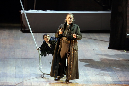 Der Bass Alex Esposito glänzt nicht minder in der Partie von Ninettas Vater Fernando Villa­bella. Seine junge, schlanke und makellose Stimme trägt nicht nur im großen Auditorium, sondern vermag die mehr als anspruchs­vollen Kolora­tur­bögen mit aller­größter Präzision zu „setzen“ und die Rossi­nische Kunstform des Gesangs in ausdrucks­starken Inhalt zu wandeln. Nur selten kann man einen Sänger in der Ausführung der aller­schwie­rigsten Kolora­turen solche Risiken durch pointierte Stimm­ge­staltung, Tempo und Präzision nehmen hören – Bravo! Die Altistin Serena Malfi gestaltet als junger Pippo einen im Gestus wunder­baren, ebenfalls in Ninetta heimlich verliebten jungen Mann, dessen stille Innigkeit als unauf­fäl­liger Gegenpol zum Liebhaber Giannetto zärtlich und mit sanftesten stimm­lichen Phrasen über die Rampe kommt. Eine leise, ausdrucks­starke, bewegende Stimme der stillen, zugewandten und vergeb­lichen Liebe. Edgardo Rocha gestaltet mit seiner feinen, schmieg­samen, und mit einer im Kern klaren Klang­säule begna­deten Stimme den im Libretto nicht immer starken Charakter des Liebhabers Gianetto mit zartestem Schmelz und wunder­barer stimm­licher Flexi­bi­lität. Ninettas Dienstherr Paolo Bordogna als Fabrizio Vingradito und Teresa Iervolino als seine Frau Lucia runden das junge Ensemble in ebenso eindrucks­voller und untade­liger Weise ab. Der zudring­liche Bürger­meister Gottardo wird von Michele Pertusi außer­or­dentlich überzeugend verkörpert. Stimmlich souverän und mit geschmeidig geführtem Bass überzeugt Pertusi in dem jungen Ensemble mit seiner eindrucks­vollen Stimm­kultur und Bühnen­er­fahrung. Der szenische Auftritt in zeitweiser Kostü­mierung als eine Art Franken­stein und ohne nennens­werte Perso­nen­führung des gesamten Ensembles beein­trächtigt leider die Umsetzung dieser Figur am meisten.