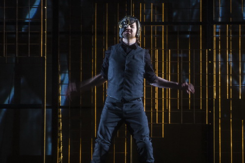 Trotz der Sektgläser in der Hand will keine Feierstimmung aufkommen. Kraft- und saftlos sitzen die Götter zusammengesunken in ihren Stühlen auf einem Podium vor einem Modell von Wallhall mit leuchtenden Speeren im Hintergrund, während Freia unten neben dem toten Fasolt kniet. Sie scheinen alle völlig resigniert zu haben. Dabei sollten sie sich auf ihre neu erbaute, prächtige Burg Walhall freuen. Erst ganz spät, wenn bereits im Orchester in voller Pracht der Einzug der Götter erklingt, raffen sie sich auf und beginnen, langsam die Treppe hinab zu steigen: Ein ziemlich düsteres Bild zeichnet Igor Pison aber nicht nur im Finale von Richard Wagners Das Rheingold. Der Regisseur scheint mit seinen dunklen Lichtstimmungen bereits die heraufdräuende Götterdämmerung vorwegnehmen zu wollen.