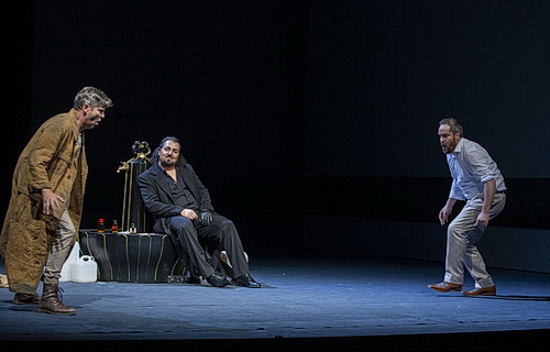 Hagen, der im Hass gezeugte und auf Hass getrimmte Sohn Alberichs ist das radikalste Beispiel eines funktional missbrauchten Kindes ohne die geringste Rücksicht auf dessen persönliche Bedürfnisse. Das Bearbeitungs-Team beschränkt sich deshalb auf Szenen, in denen Hagen oder dessen Vater Alberich vorkommen, sprich auf Ausschnitte aus der Götterdämmerung und dem Rheingold. Das führt zu einem schwindelerregenden Wechsel durch die beiden Ring-Teile: Einleitend mit Erdas Warnung aus dem Rheingold, gefolgt von Hagens traumatischer Begegnung mit dem Vater im zweiten Götterdämmerungs-Akt, dann zurück an den Anfang des Rheingolds mit Alberichs Raub und Fluch. Nach der Pause spinnt Hagen seine Intrigen in der Götterdämmerung, gipfelnd im Racheterzett des zweiten Akts. Mit einem mickrigen Messer ersticht er ganz beiläufig Siegfried, und das Spektakel endet mit der Trauermusik Siegfrieds.