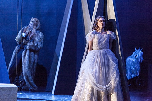 Fanny Lustaud mit ihrer berückenden Bühnenpräsenz wirkt wie eine Idealbesetzung des „Aschenputtels“, was den märchenhaften Charakter der Inszenierung unterstützt. Wie auch die alles andere als abstoßende Darstellung des Biests durch den sanft agierenden und wie einen zotteligen Hund kostümierten Gastsänger Rafael Bruck. Die ohnehin schwer darstellbare Intention der Regisseurin wird dadurch allerdings eher vernebelt. Nämlich, dass das Fremde, Unbekannte intuitiv zu feindlichen und angsterfüllten Aversionen führt, ohne den Menschen und seine positiven Attribute ernsthaft wahrzunehmen. Ein Plädoyer der Regisseurin gegen Ignoranz und Vorurteile, das sich gegen die märchenhaften Elemente kaum durchsetzen kann. Was nicht nur der Inszenierung anzulasten ist. Denn für dezidierte Psychogramme taugen weder Libretto noch Musik der Oper.