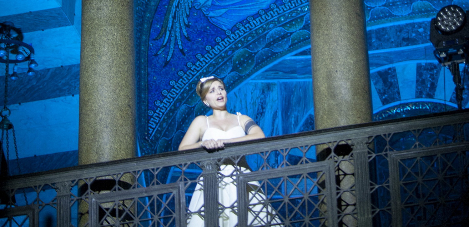Viel Raum für szenische Sensationen bietet der Diskurs von vier Personen natürlich nicht. Regisseur Ludger Engels, ohnehin ein Freund reduzierter Mittel, verzichtet klugerweise auf jeglichen konzeptionellen und äußeren Schnickschnack, sondern folgt sensibel den psychologischen Nuancen der Musik, so dass eine geschickte Positionierung der Figuren im Dom und eine behutsame Gestik vollkommen ausreichen. Ausstatter Ric Schachtebeck kann sich angesichts der überwältigenden Kulisse des Oktogons auf angemessene Kostüme und zusammen mit Eduard Joebges auf eine geschickte Lichtregie beschränken. So tauchen die Figuren immer wieder überraschend in den Öffnungen der Empore, der Portale oder auf Podesten inmitten des Publikums auf. Die Schönheit in schlichtem Weiß, das Vergnügen in einem geschmackvollen Revue-Dress, die Herren in gedeckten Farben. Teilweise geradezu märchenhaft illuminiert.