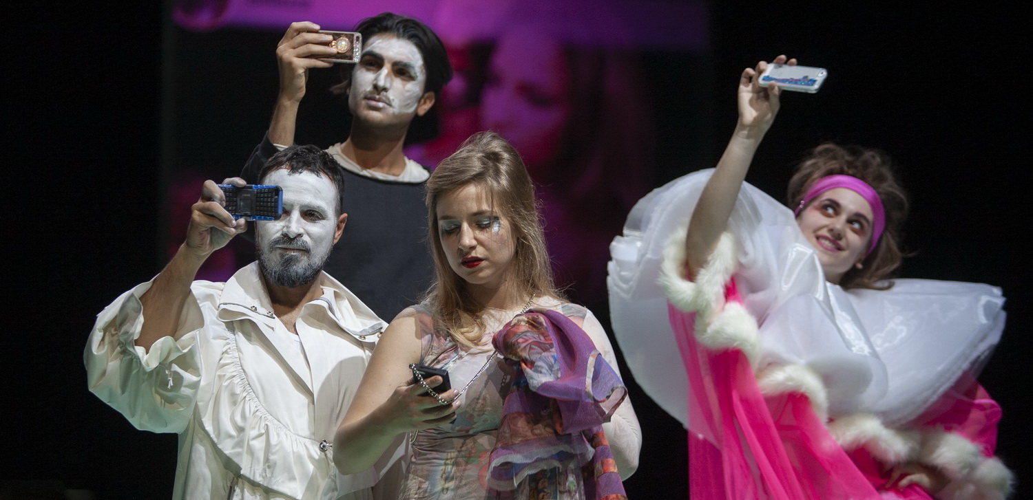 Der Titel des Stücks Der Triumph der Zeit und der Ernüchterung nimmt die Entscheidung der „Schönheit“ vorweg, zu der sie sich aber erst nach etlichen inneren Kämpfen durchringen kann, die Händel musikalisch mit genialem Einfühlungsvermögen zum Ausdruck bringt. Die mit der Entscheidung verbundene religiöse Dimension, die im Aachener Dom spürbar wurde, drängt Ludger Engel in seiner „Theater-Version“ zurück. Er sieht in den Allegorien junge Menschen von heute, die in einer Zeit des Schönheits- und Jugendwahns den gleichen Problemen ausgesetzt sind wie Menschen im Barock. Eine Jugend, die sich heute in Selfies, die in Aachen überwiegend live auf Projektionsflächen übertragen werden, nicht an ihrer „Schönheit“ sattsehen kann und wie auf einem „Cat-Walk“ durch das Leben schreitet.