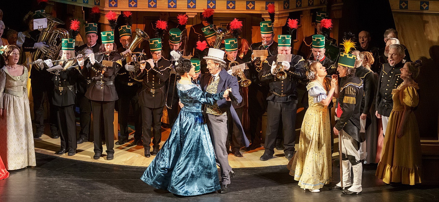 Doch Huhns Suche nach versun­kenen Schätzen macht nicht bei der Oper halt. 2016 insze­nierte er Der Obersteiger von Carl Zeller, einem der Meister der Wiener Goldenen Operette, dessen Der Vogel­händler sich bis heute im Reper­toire gehalten hat. Der 1894 urauf­ge­führte, auch verfilmte Obersteiger hingegen ist nahezu aus den Spiel­plänen verschwunden. Nicht so in Annaberg-Buchholz, wo er seine Lebens­fä­higkeit bereits im vierten Jahr beweist. Wo passt das Stück aber auch besser hin als ins Erzge­birge, dort wo bis in die 90-er Jahre des letzten Jahrhun­derts noch der Bergbau florierte? In dieses Milieu führt Der Obersteiger. Der zettelt zu Beginn einen Streik an, worauf der Bergdi­rektor aus der Stadt anreist, um nach dem Rechten zu sehen. Auch der Fürst und Besitzer des Bergwerks mischt inkognito als Volontär mit, ebenso eine als Bürger­liche verkleidete Komtesse. Es kommt zu Intrigen und Verwick­lungen, gewürzt mit ein bisschen Sozial­kritik, bis das Ganze in einer Doppel­hochzeit mündet.