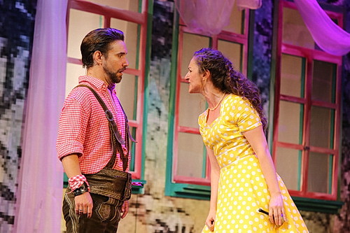 Musika­lisch und sänge­risch ist das einsame Spitze, was das Ensemble des Lehár-Festivals an diesem Abend auf die Bühne bringt. David Sitka gibt den Vogel­händler Adam mit großer Geste, einschließlich tenoralem Glanz und Strahl­kraft in den großen und bekannten Arien, die ein jeder im Ohr hat. Sein Auftrittslied Grüß euch Gott, alle mitein­ander kommt spritzig daher, macht sofort Lust auf mehr. Für das große Duett Schenkt man sich Rosen in Tirol mit Corina Koller gibt es fast einmi­nü­tigen Szenen­ap­plaus, und auch für sein zweites großes Lied, Wie mein Ahn’l zwanzig Jahr, erhält Sitka langan­hal­tenden Beifall. Corina Koller, die in Bad Ischl ihr Rollen­debüt als Kurfürstin gegeben hat, gibt diese Partie mit strah­lendem lyrischem Sopran und großem Ausdruck, ihr Spiel ist von einer natür­lichen Grandezza geprägt. Wunder­schön auch ihre große Arie zu Beginn des dritten Akts, Als geblüht der Kirschenbaum, sehr gefühlvoll vorge­tragen. Besser kann man die Partie kaum noch anlegen. Jenifer Lary als Christl weiß mit hohem Kolora­tur­sopran und kokettem Spiel zu begeistern, ihr Auftrittslied reißt das Publikum mit, und auch im Terzett Kämpfe nie mit Frau‘n mit Stanislaus und Adam setzt Lary die Duftnoten.