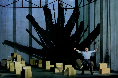 Wagners Erlösungsmetapher, allein im Tod siege die Liebe, tropft bei Gloger als Blutspritzer durch die Inszenierung. Als Senta und der Holländer ihre Liebe mit einem blutsbrüderschaftlichen Ritual bekräftigen, projizieren Martin Eidenbergers Video-Einblendungen Blutstropfen auf die weiß sauberen Wände der Ventilatoren-Logistik-Halle. Sie verdichten sich zu einem die Wände überdeckenden Fluss, der video-technisch in endlose Wälder überblendet wird. Mit Gloger und Eidenberger bleibt das Liebesversprechen von Anfang nur Projektion.
