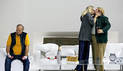 Was die Inszenierung des neuen Rings angeht, ist es müßig, die unzähligen Missverständnisse und Irrwege zu wiederholen oder zu vertiefen. Dass die Reduktion des zeitlos aktuellen Stücks auf eine Familien-Saga, aus der Schwarz alle zentralen Botschaften um Macht, Geldgier und Naturzerstörung eliminierte, die Götterdämmerung nicht zu einem schlüssigen Ende führen kann, überrascht nicht. Der vom Fluch eines seelenlosen Materialismus erlösende Weltenbrand fällt bei Schwarz denn auch aus. Zum gewaltigen orchestralen Klang-Szenario der Schlussmusik fällt Schwarz nichts ein. Man sieht eine leere Bühne, auf der Siegfried, Brünnhilde und ein Kind herumliegen. Kein Wunder, wenn man bereits den Ring als Symbol eines fluchbeladenen, in den Untergang führenden Kapitalismus‘ durch ein Kind als Symbol der Hoffnung ersetzt, das entsprechend hilflos durch die vier Abende tapert, am Ende die Götterdämmerung aber auch nicht überlebt. Krauser geht es nicht mehr.