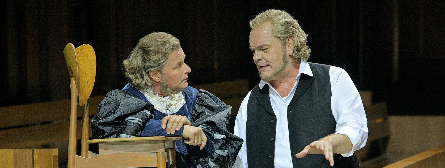 Veit Pogner ist sein Schwiegervater Franz Liszt, der virtuose Pianist, den der darin weniger talentierte Wagner im Vorspiel demonstrativ vom Klavier drängt. Sixtus Beckmesser ist Herrmann Levi, der vom Komponisten eigentlich als Jude verhasste Dirigent, dem er trotzdem die Parsifal-Uraufführung anvertraut; er wird als Karikatur ausgestellt. Eva als Cosima ist offensichtlich auch nicht mehr als eine Spielfigur in Wagners Theater-Kosmos: Ich habe die Eva geheiratet.