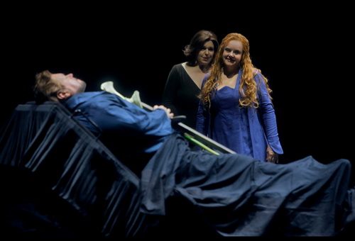 Dem Einfluss Markes können sich die Getreuen des Paars, Brangäne und Kurwenal, nicht entziehen und werden geradezu neutralisiert. Sie spielen in der Inszenierung eine blasse Rolle. Nur dem Einsatz von Christa Mayer ist es zu verdanken, dass sich die Brangäne immerhin noch ansatzweise profilieren kann, wenn auch mit stark forcierten stimmlichen Mitteln. Und das Liebespaar selbst braucht sich die Liebe natürlich nicht durch einen mysteriösen Liebestrank „anzusaufen“. Demonstrativ gießt Isolde das Fläschchen aus. Trotz der statischen Personenführung gehen die beiden Protagonisten mittlerweile intuitiv erheblich flexibler aufeinander ein, so dass der blutleere Eindruck, den noch die Premiere prägte, gemildert wird.