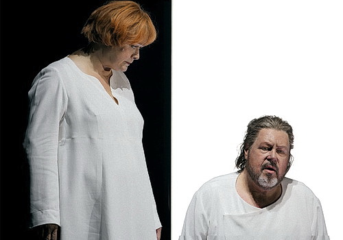 Ein Problem, mit dem Georg Zeppe­nfeld als König Marke aller­dings nicht zu kämpfen hat. Zeppe­nfeld, in diesem Jahr gleich in vier Partien auf dem Grünen Hügel vertreten, bietet wiederum ein Muster­bei­spiel an glasklarer Diktion und edelster Stimm­kultur. Schade, dass Regisseur Roland Schwab an dieser Partie, wie auch an den anderen Neben­partien, wenig Interesse zeigt. Denn er konzen­trierte sich auf die „Weltflucht“ der Titel­helden, die auf dieser Welt nicht zusam­men­kommen können und offen­sichtlich auch nicht wollen. Denn die Sehnsucht nach einem „einsamen Tod“ übersteigt in Schwabs Lesart das Verlangen nach einer erfüllten Liebe. Die verbotene Liebe der beiden im politi­schen Umfeld als Affront des Vasallen Tristan gegen seinen König lässt Schwab, im Gegensatz zu Katharina Wagner in ihrer letzten Bayreuther Insze­nierung, völlig unbeachtet.