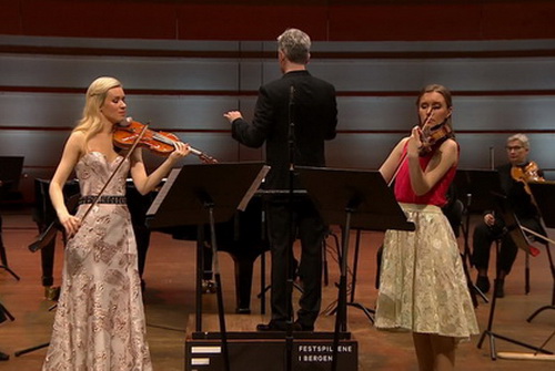 In den Grieghallen als Veranstaltungszentrum fühlt man sich richtig wohl. Bildregie und Tonqualität sind vom Allerfeinsten. Da wird den Norwegern, nein, dem internationalen Publikum für die kommenden zwei Wochen viel versprochen. Egal, ob sechs Streicher auftreten, um das schwungvolle 180 Beats per Minute von Widmann vorzutragen, oder das Orchester zusammentrifft, um die vielleicht berühmteste Konzertarie Ch’io mi scordi di te? von Wolfgang Amadeus Mozart zu begleiten, die Sopranistin Eriksmoen einen Hauch zu zart interpretiert. Vielleicht hätte es ein bisschen weniger Widmann an diesem Abend auch getan. Sein Con brio zeigt allerhöchste Ansprüche an die Musiker, aber man fragt sich doch, ob es nur noch darum geht, möglichst viel ungewöhnliche Töne im Orchester zu erzeugen. Mit dem ersten Satz aus Tabula rasa von Ärvo Pärt für zwei Geiger und kleines Orchester geht der Eröffnungsabend zu Ende. Zum Abschluss tritt noch einmal Anders Beyer, der Festivalleiter, vor die Kamera, um sich auf Englisch vom Festivalpublikum zu verabschieden und auch seine persönlichen Grüße für das Festival mit auf den Weg zu geben.