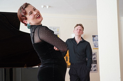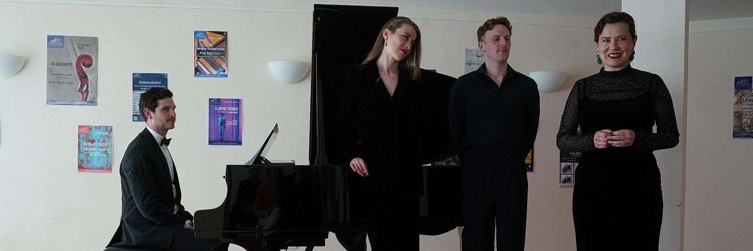 Die Damen und Herren Daffke, oder kurz die Daffkes, wissen viele Lieder davon zu singen. Daffke: Das Wort stammt aus dem Jiddischen und bedeutet, etwas aus Trotz, nur zum Spaß oder aus Eigensinn zu unternehmen. Den Berlinern gefiel das Wort so gut, dass es Eingang in ihre Mundart fand. Und fünf Freunde wiederum fanden ausreichend Gefallen daran, dass sie 2014 ein Chanson-Ensemble gleichen Namens gründeten. Da ist zum einen Ilan Bendahan Bitton, der zusammen mit Karoyan Klavier studierte und heute der „Pulsgeber“ des Ensembles ist. Friederike Kühl ist nicht nur Sopranistin, sondern auch eine Frau mit Spielfreude und einer unglaublichen Wandlungsfähigkeit ihres Gesichtsausdrucks. Über eine enorme Farbpalette in der Stimme verfügt auch Dennis Kuhfeld, die vom Falsett bis zum Bariton reicht. Daneben ist er für die Arrangements zuständig. Franziska Hiller ist die Altistin im Bunde, die zudem die Kontaktfreudige für die Außenwelt gibt. Und eigentlich gehört auch Markus Paul zum Ensemble – wenn er nicht gerade am Staatstheater Cottbus seinen dortigen Ensemble-Verpflichtungen nachkommt. Also treten die Daffkes in Refrath heute zu viert auf.