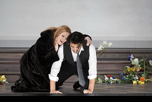 In den opulenten Kostümen von Klaus Bruns wechselt Jakubiak – gewissermaßen parallel zu ihren charakterlichen Entwicklungen – von großer, eher traditioneller Robe in einen Hosenanzug, in dem sie wie in umgekehrter Rosenkavalier-Anordnung Paolo die Rose ihrer Liebe übergibt.
