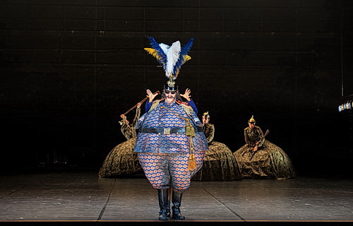 Kosky spitzt die Parodie zu und besetzt die Großherzogin mit dem Bariton Tom Erik Lie in Drag, der seine spielerischen und gesanglichen Talente zum Besten gibt. Offenbach liebte starke Frauenfiguren und hatte die Rolle für den damaligen Star Hortense Schneider geschrieben – sogar Bismarck soll extra nach Paris gereist sein, um sie zu hören. Tenor Ivan Turšic ist der unbeholfene Soldat Fritz, Bass Jens Larsen der sehr runde und stimmstarke General Bumm; Bass Tijl Faveyts als Baron Puck ist sein konspirativer Kumpel und Tenor Christoph Späth der einfältige Prinz Paul. Mezzo Christiane Oertel gibt den mysteriösen Baron Grog. Strahlend frisch und unschuldig zeigt sich der Sopran von Alma Sadé als Wanda.