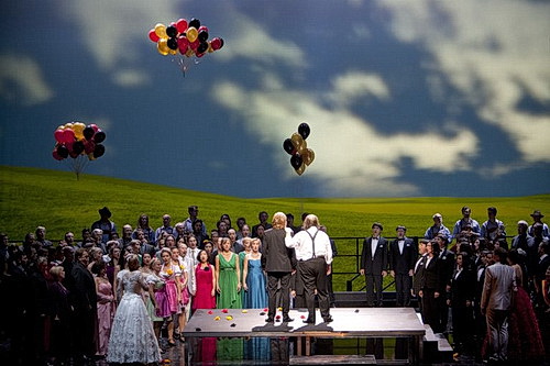 Daniel Barenboim am Pult seiner Staatskapelle – bei Wagner sind sie eine Einheit, die einen lebendigen, warmen, packenden, komischen und lyrischen Wagner erleben lässt. Dazu der von Martin Wright einstudierte Chor, der besonders viel Spaß an der Rauferei des zweiten Aktes hat und doch dann feierlich und leicht ironisch auf der Festwiese feiert – in den bunten Kostümen von Adriana Braga Peretzki, die zu einem biederen Provinzfest passen. Das Finale wird von Barenboim angefeuert – Orchester, Chor und Solisten bersten vor Lebensfreude.