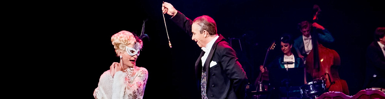 Huber feuert sein Ensemble an und holt jedes Quäntchen an Spiel­freude aus ihnen raus. Da sind die Geschwister Pfister – schon oft auf der Bühne der Komischen Oper gefeiert – Tobias Brun als betro­gener und betrü­gender Ehemann Gabriel von Eisen­stein und seine Frau Rosalinde, von Christoph Marti in Drag gespielt und mit kräch­zendem Falsett gesungen. Beide bilden eine Achse, werfen sich die Bälle zu. Dazu kommen die Rollen von Franz Frickel als Gefäng­nis­di­rektor Frank und Max Gertsch als Notar Dr. Falke – solide Bürger, die sich in ihrer Biederkeit auch amüsieren können. Die Chanson- und Musical­sän­gerin Stephanie Dietrich mimt den Prinzen Orlofsky mit übertrie­benem russi­schem Akzent und wenig Witz. Dafür ist Gabriela Ryffel mit pointierten Kolora­turen und kapri­ziösen Wendungen ein äußerst gelun­genes Stuben­mädchen Adele, die eine wunderbare Gegen­spie­lerin mit trockenem Humor in Nini Stadlmann als oppor­tu­nis­tische Schwester Ida hat. Alen Hodzovic verkörpert mit schönem, tenoralem Timbre und gutem komischem Timing die Rolle des Sängers und ehema­ligen Liebhabers Alfred. Und dann wäre noch Stefan Kurt – zuletzt an der Komischen Oper gefeiert als Zaza in La Cage aux Folles – der in dieser Produktion gleich drei Rollen hat: als Advokat Dr. Blind, den Ägypter Ali Bey und Frosch der Gefäng­nis­wärter. Eben als Frosch – eine beliebte Rolle für Schau­spieler, die oft auch Bezug auf aktuelle gesell­schaft­liche und politische Gescheh­nisse kommen­tieren – macht sich Stefan Kurt die Rolle zu eigen mit gekonntem Sinn und Timing für seine Pointen.