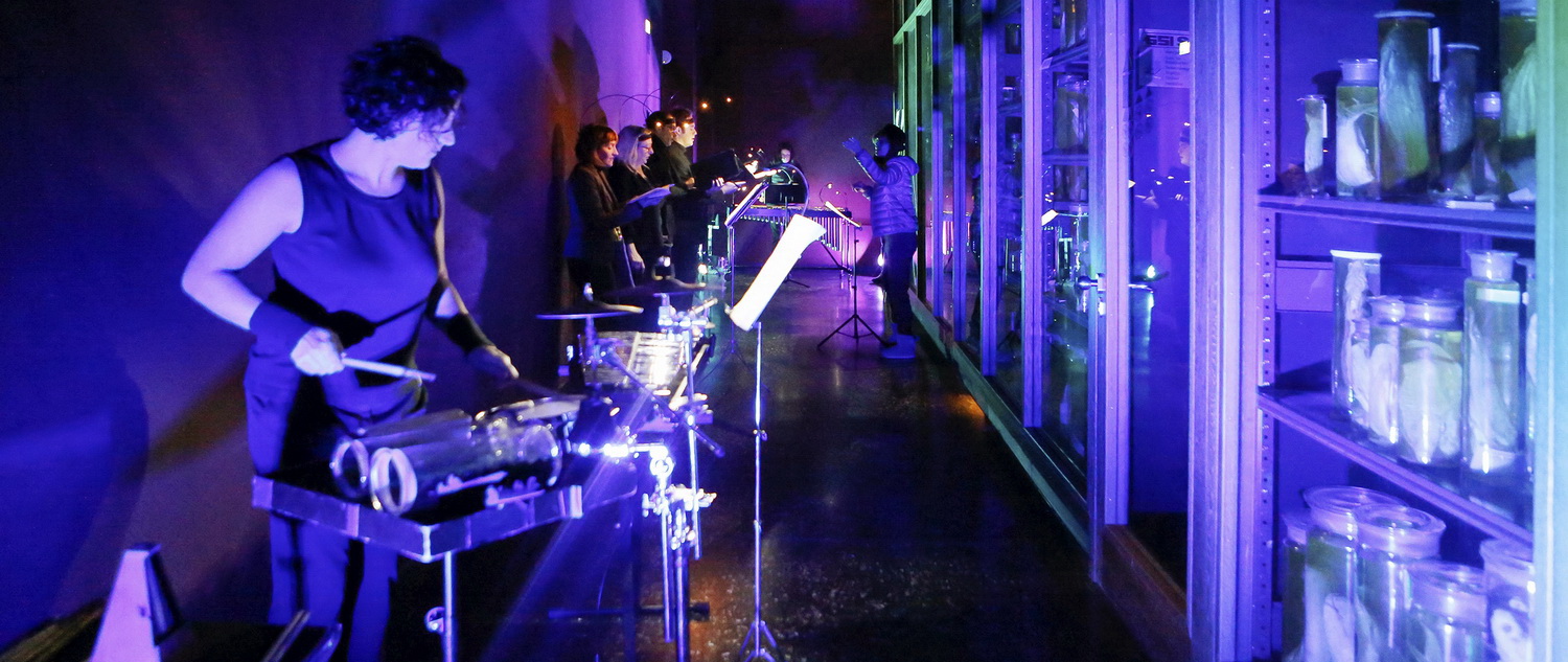 Für die Komponistin Ulrike Haage war der Begriff eine Inspiration, als sie die berühmte Nass-Sammlung des Museums besuchte. Hier war sie von den verschiedensten Fischen die in etwa 276.000 Gläsern, teils noch aus dem 18. Jahrhundert, „archiviert“ sind, fasziniert, ebenso wie von Material, Struktur und Ästhetik der Sammlung. Als Musikerin weiß sie, wie unterschiedlich gefüllte Aufbewahrungsgläser klingen können. So tastete sie sich gemeinsam mit dem Fischkustoden Peter Bartsch an die Materie heran und übersetzte sie musikalisch in ein assoziatives Klanggewebe, das von Marimbaphon, Vibraphon und Schlagzeug gespielt wird, ohne jegliche elektronische Effekte.