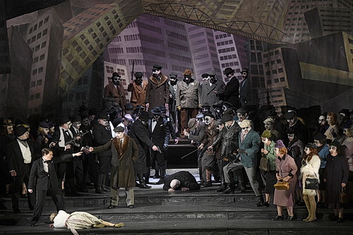 Philipp Stölzl und Christian Baier haben für die Deutsche Oper Berlin den Rienzi auf zwei Akte und eine Netto­spielzeit von zweieinhalb Stunden verkürzt, also das Werk mal eben um die Hälfte reduziert. Ob es legitim ist, bei dieser Fassung überhaupt noch vom Wagner­schen Werk sprechen zu wollen, sei dahin­ge­stellt. Was auffällt, ist die einseitige Kürzung, so dass fast ausschließlich die großen Chor- und Massen­szenen erhalten bleiben. Das hat natürlich mit dem Insze­nie­rungs­ansatz von Stölzl zu tun, der die Massen­szenen in eine omniprä­sente Wochen­schau­dar­stellung in flackernden Schwarz-Weiß-Bildern mit Leni-Riefen­stahl-Ästhetik auf eine Großleinwand bringt. Man darf nicht vergessen, Stölzl kommt vom Film, und die Kamera ist sein Lieblings­werkzeug. Dass man damit Opern spannend und hautnah insze­nieren kann, hat er 2015 in Salzburg beim Gastspiel der Semperoper Dresden mit den beiden Kurzopern Caval­leria Rusticana und Pagliacci bewiesen. Doch mit dieser Insze­nierung liegt Stölzl einfach daneben. Musika­lisch bedeutet die Zusam­men­strei­chung auch, dass viele Motive in den großen Chorszenen sich ständig wieder­holen, was natürlich zu einem hohen Abnut­zungs­effekt führt. Lange Monologe, Duette, die etwas Ruhe in die aufge­wühlte und dynamische Musik bringen, sind Fehlan­zeige. Lediglich das Gebet des Rienzi als große Solo-Arie bleibt vom Kürzungswahn verschont.