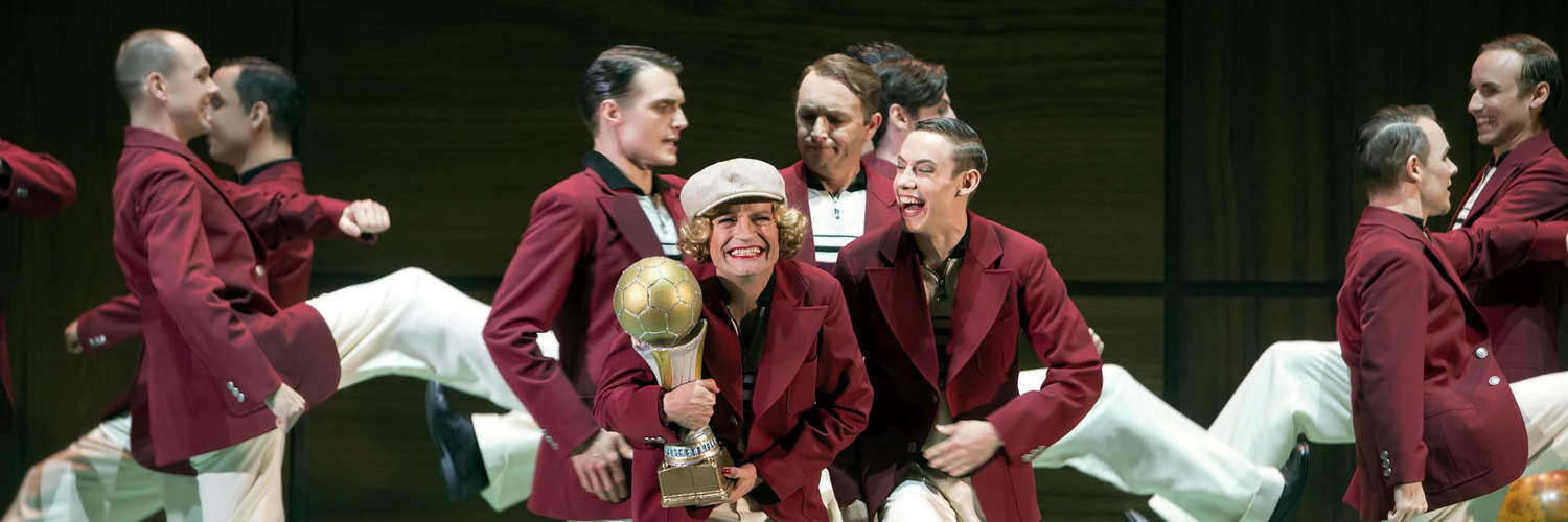 Nein, diesmal ist die Komische Oper Berlin nicht der Vorreiter in Sachen Paul Abraham. Seine lange vergessene Operette Roxy und ihr Wunderteam, die jetzt in der Hauptstadt Premiere feiert, war in den letzten Jahren bereits in Dortmund und Augsburg zu sehen. Bei dem Thema kein Wunder. Denn es geht in dem Stück um Fußball und der lockt bekanntermaßen die Massen ins Stadion. Warum also nicht auch ins Theater? Und tatsächlich ist eine ganze Fußballmannschaft samt Kapitän auf der Bühne versammelt. Die Kicker kommen aus Ungarn und haben gerade sensationell das englische Team in London geschlagen. Nun geht es zurück in die Heimat, um dort für das Revanchespiel zu trainieren. Mit dabei ist die englische Fabrikantennichte Roxy, die ihrer geplanten Ehe mit dem ungeliebten Bobby Wilkens entfliehen will. Im Camp treffen die Fußballer auf die Schülerinnen eines Mädchenpensionats. Was natürlich zu geballten amourösen Annäherungen zwischen den Geschlechtern führt. Am Ende siegt nicht nur das ungarische Team, sondern auch die Liebe: Roxy angelt sich den Mannschaftskapitän und zwölf weitere Paare finden zueinander.