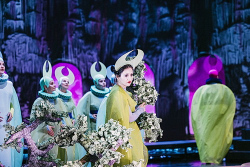 Pinar Karabulut lässt ihrer Fantasie in dieser Parodie auf die Heuchelei der Menschheit freien Lauf. Die gesamte buckelige Verwandt­schaft des Toten ist einzeln charak­te­ri­siert – ein Kompliment an Perücken­macher und Masken­ab­teilung! Neidgrünes Make-up, der rote Kopf der Empörung, alle sind typisiert – und erinnern stark an eine Inter­pre­tation des Regis­seurs Herbert Fritsch. Nur Lauretta und Rinuccio geben sich als normale, echte Liebende.