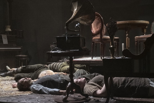Zu Beginn ist es dunkel. Schemenhaft wird ein bürgerlich eingerichtetes Zimmer sichtbar, ausgestattet mit Klavier, schönen Möbeln, Teppich und Grammophon. Als ob eine historische Platte aufgelegt werden würde, erklingt nun die Ouvertüre im vollen Orchesterklang, aber von Knacken und Knistern durchsetzt, in die sich zum Ende hin Bomben- und Kriegsgeräusche mischen. Als es heller wird, erkennt man sieben junge Frauen, im Stil der 1930-er und 40-er Jahre gekleidet, die nacheinander aus Verstecken hervorkommen. Eine beginnt zart Suse, liebe Suse zu singen, eine zweite setzt sich ans Klavier. Erinnerungen an heile Kinderzeiten werden wach, die vertrauten Lieder verdrängen für kurze Zeit Hunger und Furcht. Doch immer wieder bricht die Realität ein, werden die Mädchen von Angst und Hoffnungslosigkeit überwältigt. Zum Schluss schichten sie das Mobiliar aufeinander und legen sich, aneinander kauernd, auf die obere Fläche schlafen, während aus dem Off Berichte von Vertriebenen eingespielt werden.