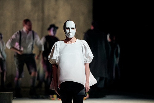 Eine kühle Betonwand, Protagonisten mit Porzellanmasken, dazu noch stilisierte Folklore, die ein abgelegenes Landidyll in Tschechien und die dortigen Trachten sublim karikiert. Der Gedanke regt sich schnell, dass es nun die berühmten zwei Stunden vor, hinter und neben einer Wand gibt. Ausgeliefert und die Pausenglocke herbeisehnend. Doch weit gefehlt! Bereits nach fünf Minuten wird klar: Das wird spannungsgeladenes wie tiefschürfendes Musiktheater. Regisseurin Eva-Maria Höckmayr und ihre Ausstatterin Julia Rösler erzählen die Bauerntragödie ganz ohne Schnickschnack und konzentrieren sich mit ihrer konzisen Arbeit für Leoš Janáčeks 1904 uraufgeführtes Opus Jenůfa auf das zunehmend zerrüttete Seelenleben der vier Hauptcharaktere.