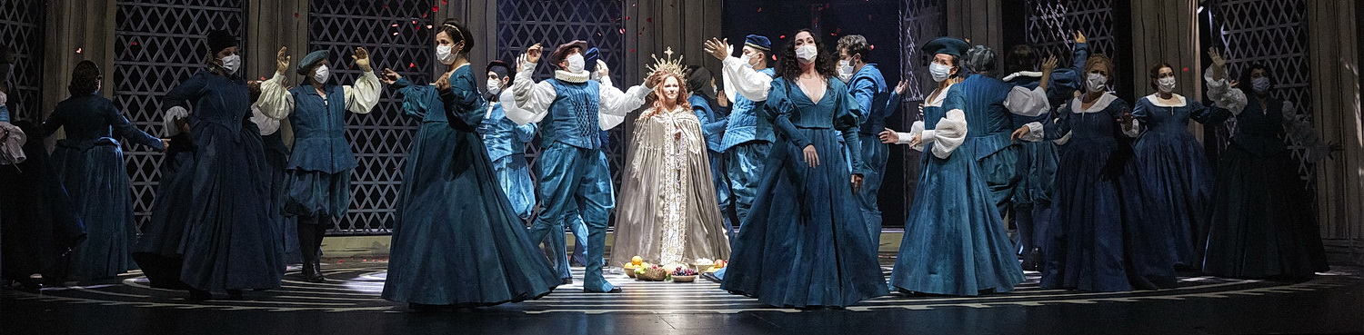 Der Chor unter Zsolt Czetner singt maskiert, dafür mit umso mehr Leidenschaft. Das kommt auch bei den wenigen Ensembles mit den Solisten glänzend zum Tragen. Aus dem Graben ertönt ein mächtiger und imposanter Verdi. Es donnert und grollt, wenn Matthew Toogood das Berner Symphonieorchester mit feuriger Verve antreibt. Der Mann am Pult versteht es ebenso behände, die feinen Verästelungen aus der Partitur herauszukitzeln, und aus der Oper das zu machen, was sie ist: Ein mehrschichtiges Meisterwerk mit einer immensen Sogwirkung. Leider bleiben die Augen trocken, der Jubel bei den Premierengästen ist trotzdem einhellig. Zu lange dauerte wohl die Corona-Zwangspause. Der Neustart, wenn auch zu zahm und beliebig, hat offenbar viele Freunde von Konzert Theater Bern abgeholt.