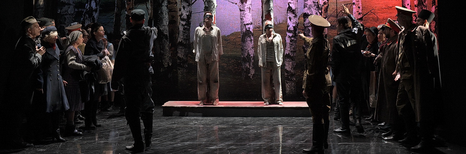 Eugenia Dushina meistert ihre anspruchsvolle Rolle als Maria mühelos. Die Sopranistin ist in den Spitzentönen sicher und transparent. Den Wahnsinn am Ende, wenn auch überzeichnet, nimmt man ihr ab. Nach dem Donnergrollen aus dem Graben wird man mit einem der schönsten Wiegenlieder der Operngeschichte belohnt. Maria singt es lupenrein im Piano für Andrej, der tot in ihren Armen liegt – ein Wiegenlied für eine Leiche. Bestens besetzt ist auch die Partie der Ljubov mit Jordanka Milkova als verzweifelte Mutter. Die lodernde Glut in ihrem Mezzosopran ist die einer Azucena aus Verdis Trovatore. Javid Samadov ist der Kerkermeister Iskra, der in seiner ledernen Uniform einem Tarantino-Film entsprungen sein könnte. Sein Bariton wirkt in dieser Rolle furchteinflößend.