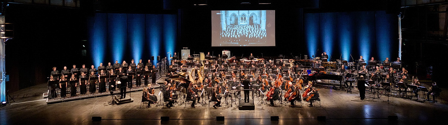 Zu einem lautstarken Kräftemessen treffen gleich drei Ensembles aufeinander und bringen kurz vor Ende der diesjährigen Ruhrtriennale die Bochumer Jahrhunderthalle zum Beben. Das Motto des Konzerts, Play Big, verspricht nicht zu wenig.