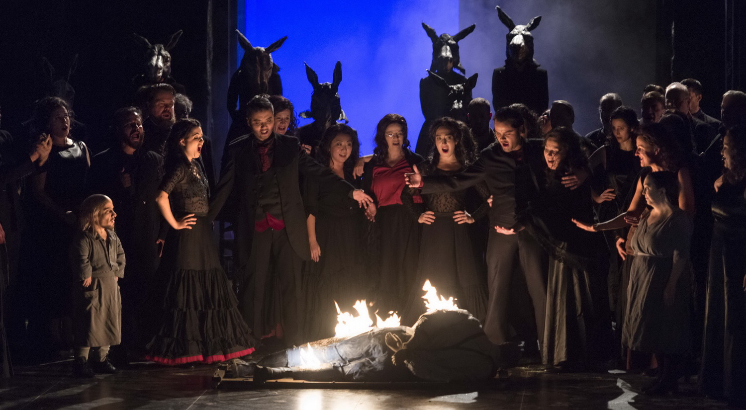 Wagners Inszenierungsidee beruht auf drei Polen. Da ist einmal die Einbettung der Liaison der Protagonisten in die klassische spanische Ikonographie, manifestiert im Antagonismus von Torero und Stier. Dann die Deutung des unauflöslichen Geschlechterkampfes in den extrem unterschiedlichen gesellschaftlichen Milieus im Kontext der griechischen Tragödie. Schließlich als dritte Ebene, das Erscheinungsbild dieser Produktion prägend, Wagners Assoziation an den spanischen Maler Francisco Goya und seine Vision einer Alptraum-Welt. „Es handelt sich hier um eine zutiefst spanische Vision“, erläutert der Regisseur seinen Ansatz, „die nichts mit Klischee oder anekdotischer Folklore zu tun hat.“ Goya sei düster, beunruhigend und grotesk.