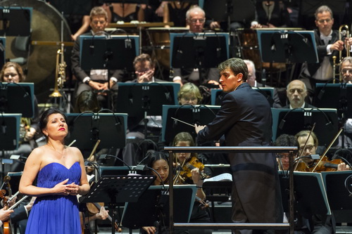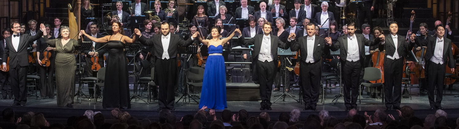 Die Ausrichtung des Stücks auf eine konzertante Wiedergabe erlaubt dem Publikum die Konzentration auf das Wesentliche in der Oper, die Musik. Diesem Prinzip dient auch das räumliche Arrangement der Mitwirkenden auf der Bühne, das die Hervorbringung eines eindringlichen, um nicht zu sagen robusten Klangtableaus mit vertikalen Steigerungseffekten ermöglicht. Vorn das Solistenensemble, dann das Beethoven-Orchester Bonn (BOB) mit dem bestens aufgelegten Blech in der ansteigenden Reihe. Darüber Chor und Extrachor des Theaters Bonn in stattlicher Zahl.