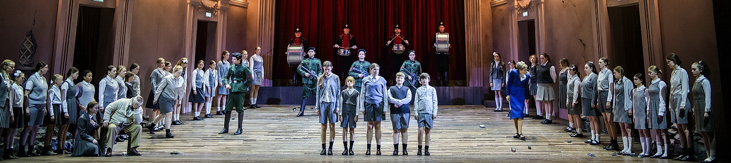 Vor allem die Leistung des Kinder- und Jugendchors in der Einstudierung durch Ekaterina Klewitz ist hervorzuheben. Fast 40 Mitglieder dieses Ensembles bilden mit ihrer beseelten Interpretation der stillen Sequenzen einen großartigen Kontrast zu den Brutalitäten der Szene sowie aus dem Graben. Einige von ihnen stammen, wie verlautet, aus der Ukraine. Sie wurden in der Probenarbeit fürsorglich begleitet. Der Sinn von Theaterpädagogik, die sich auch einmal nach innen wendet, dürfte auf der Hand liegen. Und Anerkennung finden.