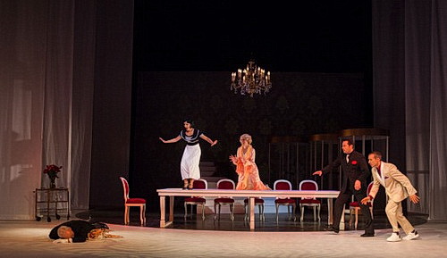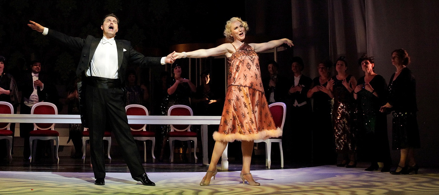 Frank Martin Widmaier, der zusammen mit Patricia Walczak auch die Ausstattung übernommen hat, inszeniert das Musical ganz konventionell und ohne großen szenischen Aufwand. Ein paar Videoeinblendungen auf der Rückwand, einige Möbel und eine kleine Showtreppe definieren die Handlungsorte, die Kostüme bilden stilsicher die 1920-er Jahre ab. Die Sprechtexte sind zwar ein bisschen altbacken, doch sobald es ans Tanzen und Singen geht, funktioniert die Show prächtig. Die von Marie-Christin Zeisset choreografierten Ballettszenen, eine Abfolge von Tango, Black-Bottom und Charleston, haben Drive und Schwung und Natschinskis sofort ins Ohr gehende Musiknummern werden von den Brandenburger Symphonikern unter der Leitung von Hannes Ferrand so schmissig wie lässig serviert.