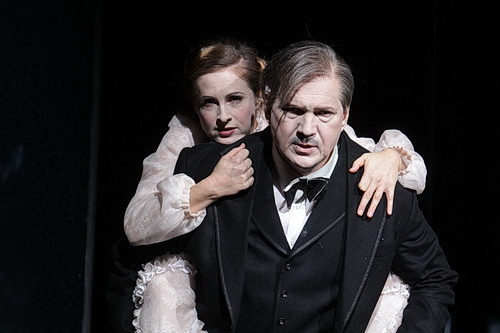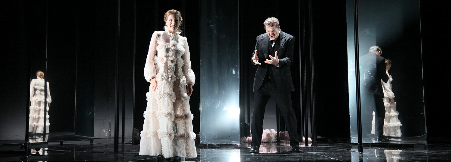 Die Personenführung will die Sprachlosigkeit, das aneinander Vorbeireden der Akteure dadurch sichtbar machen, dass sich die handelnden Personen bei der Kommunikation nicht ansehen, im Spiegelkabinett verloren gehen oder auch einfach zentral nach vorne singen. Das alles ist Teil einer geschlossenen konzeptionellen Idee, macht den Abend jedoch zu einem schwarz-düsteren Erlebnis, an dem am Ende die Utopie einer menschlichen Gleichberechtigung wie aus der fahlen Asche der Götterdämmerung emporsteigen soll.