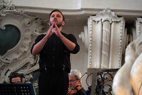 Gerade mal 22 Musiker der Capella Augustina reichen aus, um einen ganz wunderbaren Klang zu entfalten, von Thomas Wormitt am Cembalo für die Rezitative ganz zu schweigen. Das Orchester wird auf dem Mittelpodest platziert, weil die Musik von hier aus bis in alle Ecken und Winkel dringt. Ein bisschen Premieren-Stress zu Beginn hat Spering schnell im Griff und leitet das Orchester zügig in sichere Bahnen. Das Lächeln von Konzertmeisterin Monica Waisman nach der Ouvertüre zeigt: Von nun an wird orchestral alles gut. Sie behält Recht. Spering behält die Übersicht und kümmert sich um Sänger wie Musiker gleichermaßen. Als kleinen Spaß übernimmt er eine Nebenrolle und singt die eine Strophe des dritten Subalterno. So sieht Souveränität aus.